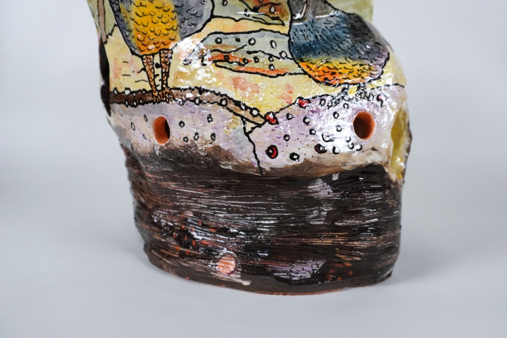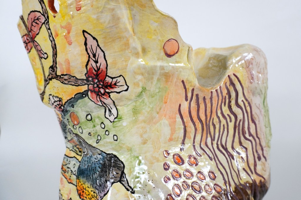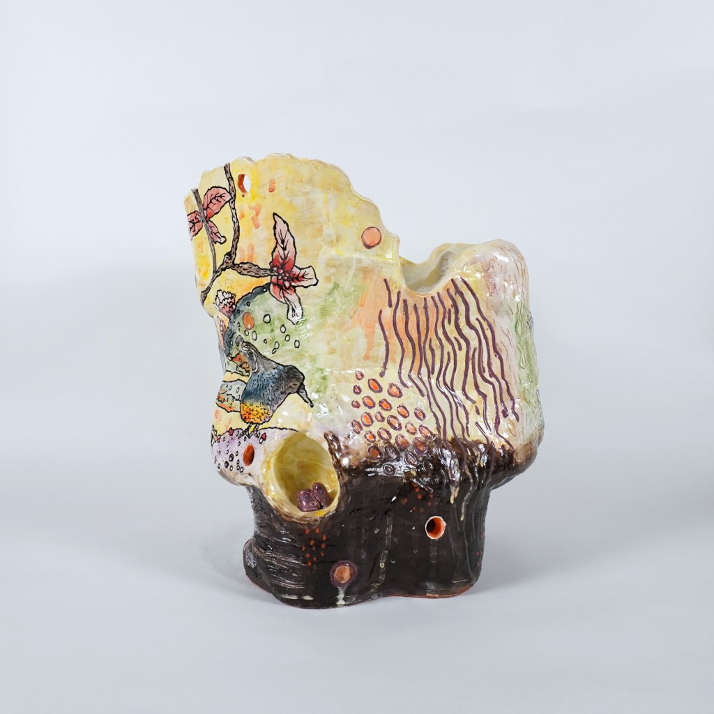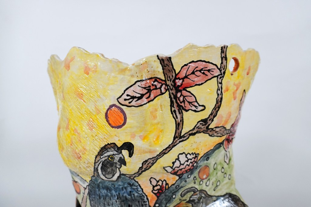 I did not know that the consequence of moving to America was me abandoning many aspects of my Korean background. After many years of living as a Californian, my memories in Korea feel ancient. I’ve captured my journey with immigration with the painting of California quails, the state bird, in the style of minhwa, a traditional Korean folk art typically created by commoners to depict their ordinary lives. I painted a symbol from my present in one of the styles found in my past.